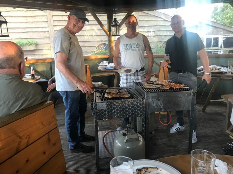 Op Zaterdag 20 juni was het dan weer zover. Rond de klok van 16.00 uur druppelden de leden die zich hadden op gegeven voor de clubdag zo geleidelijk aan binnen. Na enige tijd al even onderling gezellig gebabbeld te hebben, werd zo rond 17.00 uur de barbecue aan geslingerd en was het tijd de lege magen te vullen. Hiervoor werd de barbecue nog wel even aangespoord want er stond immers nog een belangrijke wedstrijd op het programma. Toen dan eindelijk de schaal met vlees leeg was , werden enthousiast de hengels opgezocht en werd er koers gezet richting de karpervijver waar gevist zou worden tot 21.00 uur. Over ’t algemeen werd er best redelijk gevangen, ook de bomen en struiken waren dit keer niet veilig, maar dat mocht de pret niet drukken. Iets na 21.00 uur werd de balans op gemaakt en bleek dat René van Haastrecht clubkampioen was geworden.