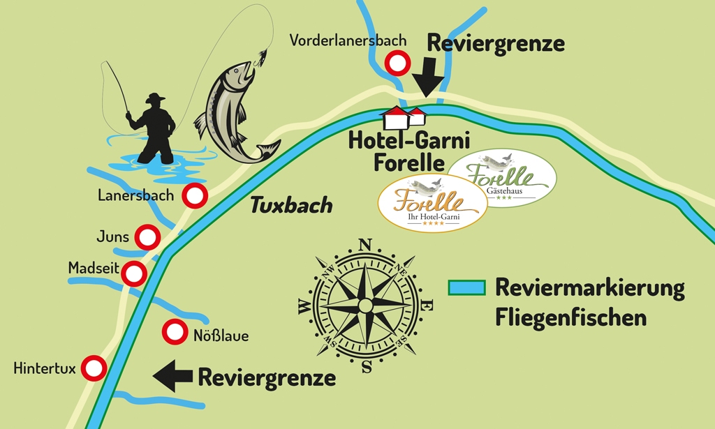 Had een tijd geleden het filmpje van Jan Leferink op YouTube gezien, https://www.youtube.com/watch?v=OR621TCiI6I, in verband met het vissen in de Tuxbach, Zillertal. Ergens in mei hoorde ik hem over hotel Forelle in Tux praten met een ander lid van Vliegvisvereniging Heelweg. Dit hotel bezit de visrechten van de Tuxbach tussen Hintertux en Tux-Vorderlanersbach. Een stuk alpenrivier van 8 km. Ik was tot op heden een 4tal maal in Oostenrijk gaan vissen. Met name in Mayrhofen, Gerlos en Mittersill. Op dat moment stond mijn besluit vast. Ik zou opnieuw op salmoniden in een Alpenrivier vissen. Eind mei alles met het hotel geregeld om van 18 tot 25 juni aldaar te verblijven uiteraard met een visvergunning voor 6 dagen.