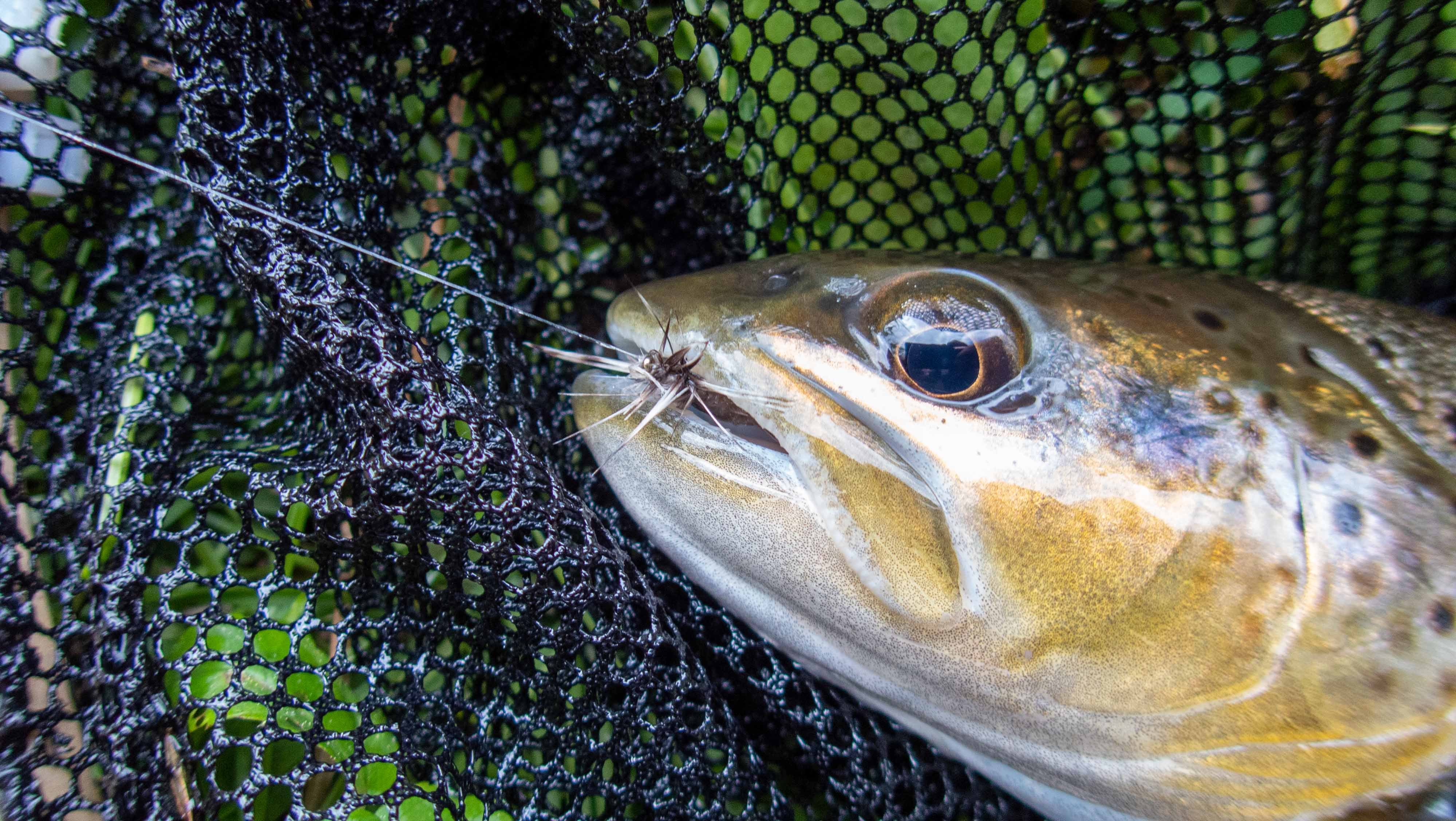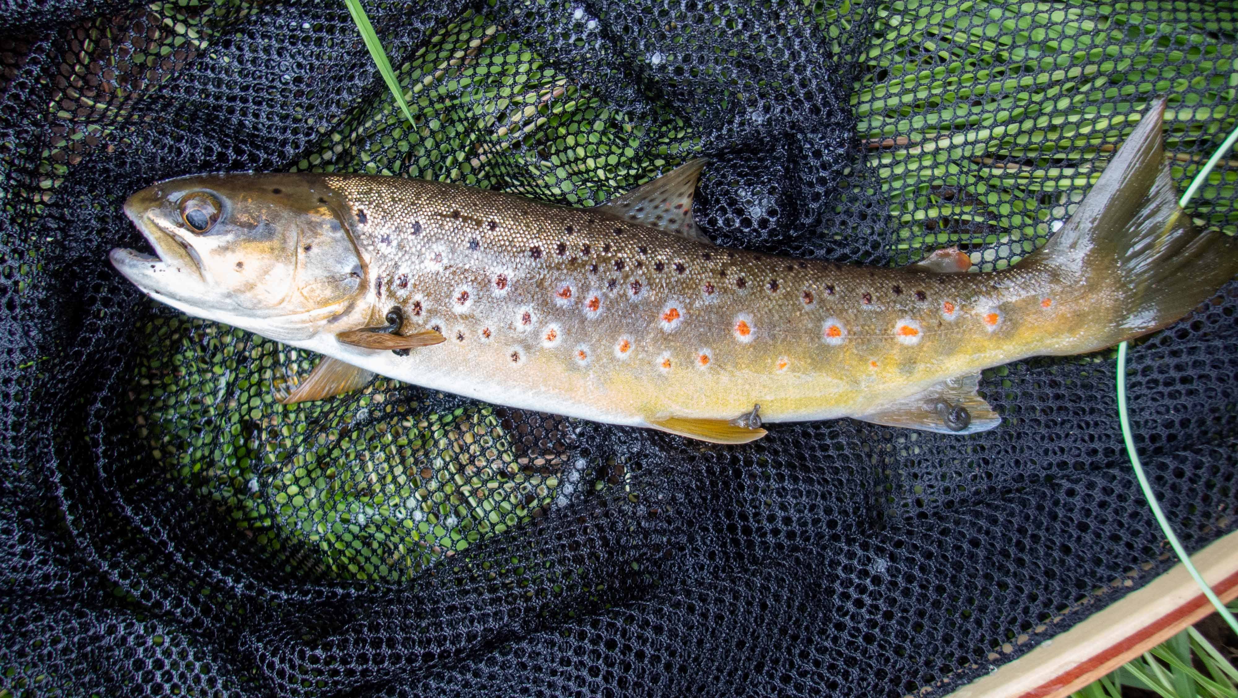Vol ongeloof land ik mijn eerste forel die dag, droog met een adams.