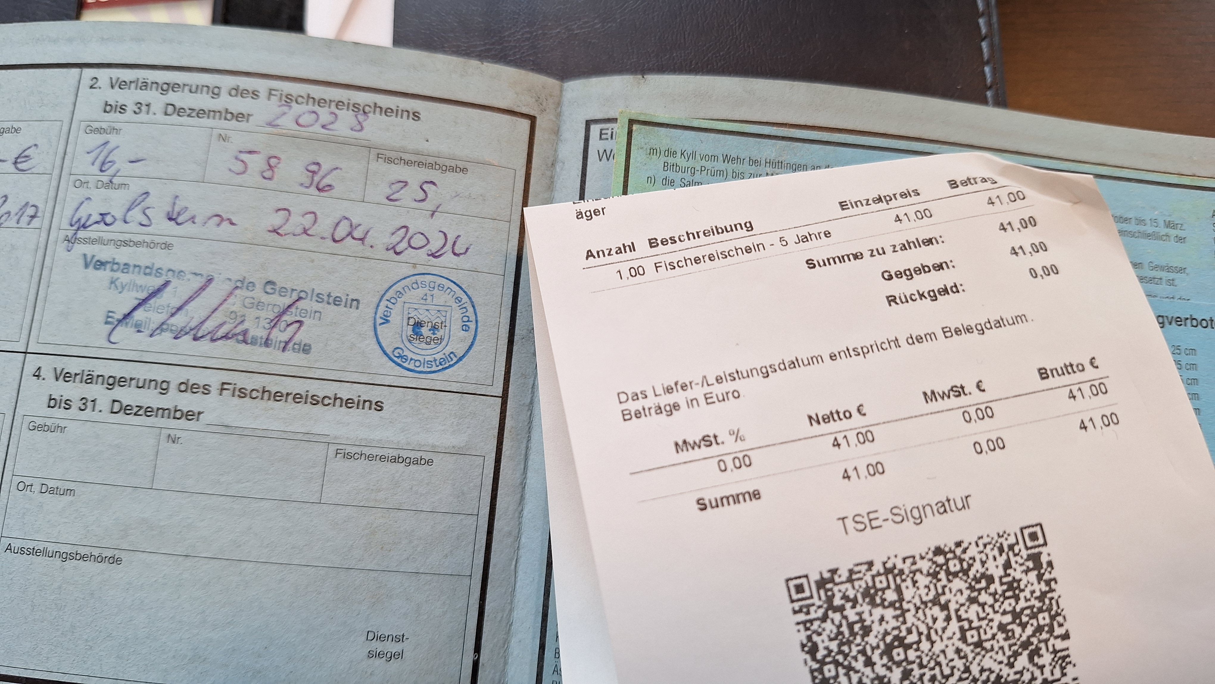 Maandag 22-04-2024 heb ik mijn Fischereischein in Gerolstein met 5 jaar laten verlengen en aansluitend een dagje vissen op de Kyll ingepland.