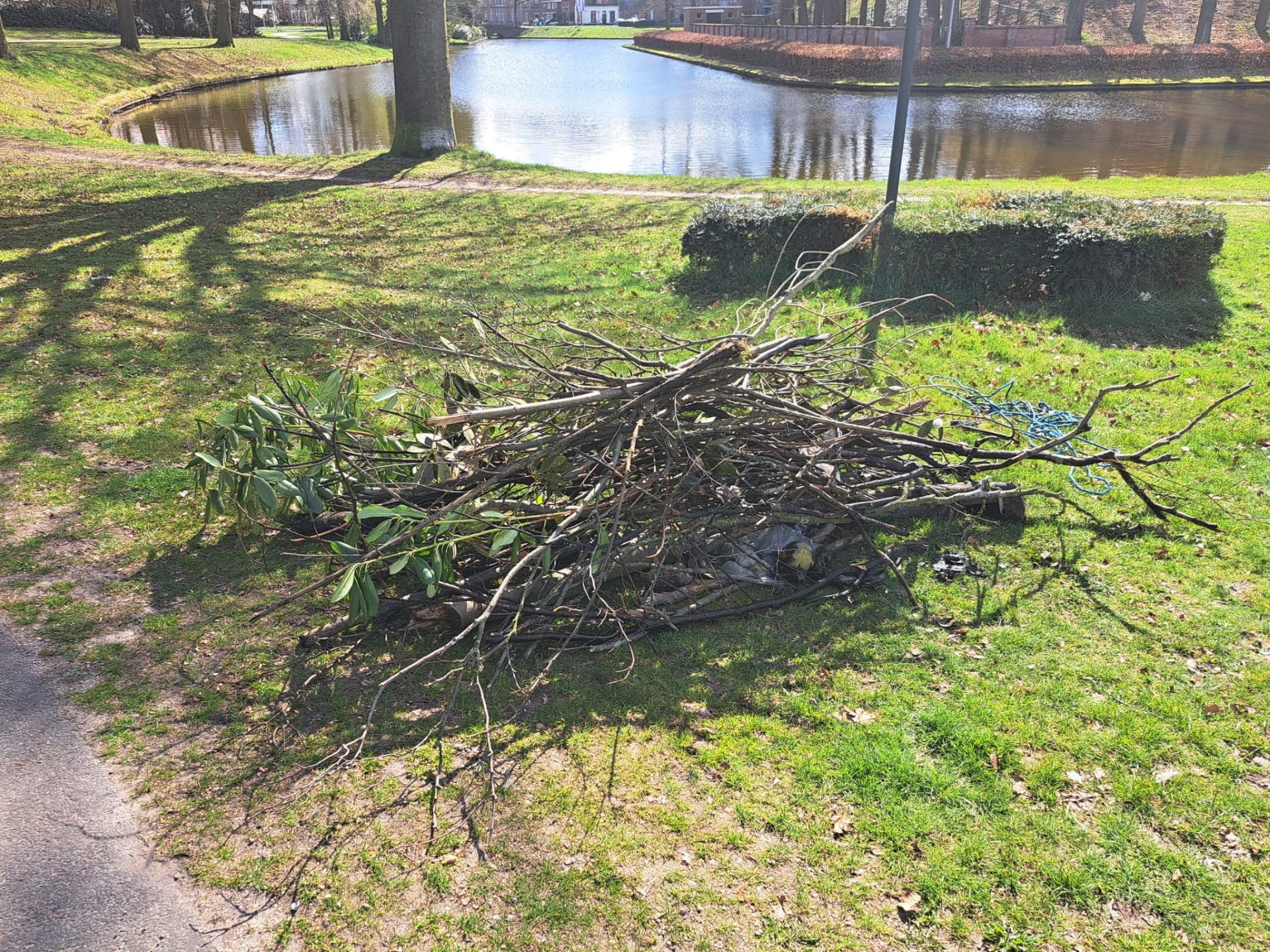Er werd flink wat afval uit het water gehaald: tien flinke stapels rommel, waaronder een hengeldeel, een velg van een autoband, veel takken, plastic en zo’n tien zakken met zwerfvuil.