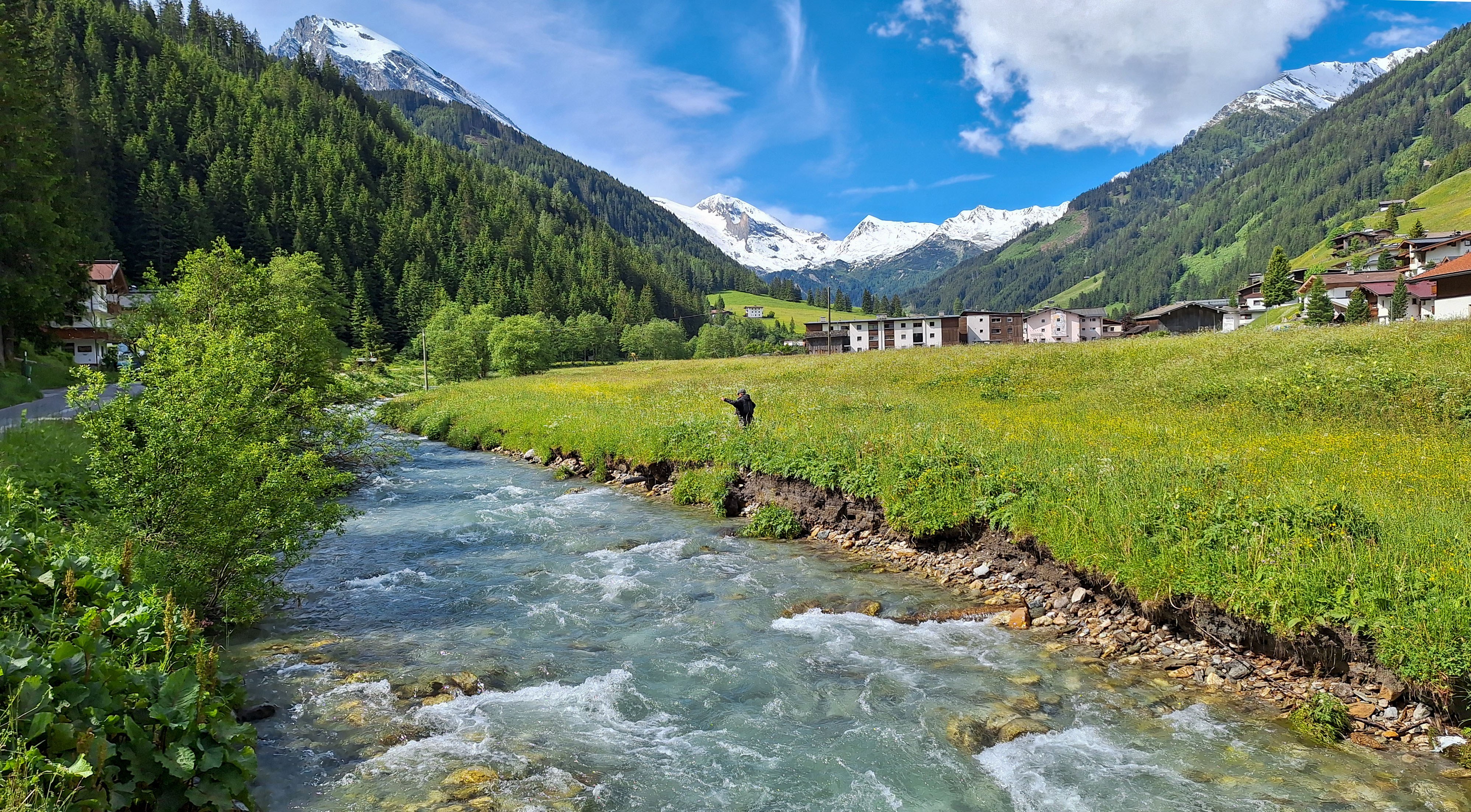 Bij aankomst in Vorderlanersbach zijn we als eerste naar de Tuxbach gaan kijken die op nog geen 500 meter achter het hotel stroomt.