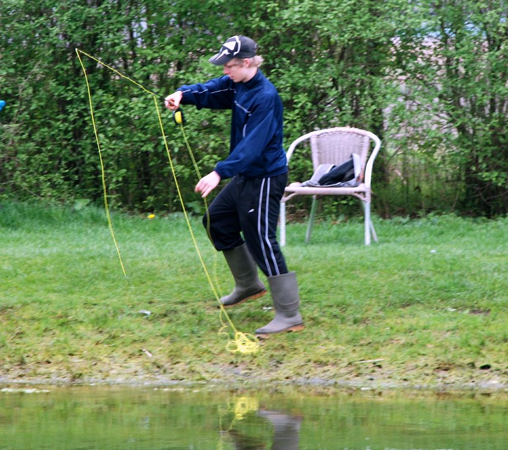 Het is van belang dat u snel en goed met de spullen leert omgaan en dat u vis gaat vangen. Hiervoor is een goed advies en misschien wat hulp via een vliegvisvereniging, na de aanschaf onontbeerlijk. Ik hoor vaak; ik heb nog een vliegenhengel in de schuur staan maar doe er niets mee, waarschijnlijk is de lijn niet goed want het ding gooit niet. Als men dan het spulletje aan ons laat zien en wij kunnen er wel redelijk mee gooien staat men vaak ongelovig te kijken. We willen dan ook graag enkele tips geven voor diegene die graag met de vliegenhengel willen gaan vissen of die er een ongebruikt in de schuur hebben staan. Allereerst leren gooien. Bijna elke hengel gooit, mits er de passende lijn op zit. Een goede techniek is belangrijker dan het materiaal. Iemand die niet de goede techniek heeft en niet kan werpen kan dit ook met een hengel van € 1000,- niet. Lijnen die lang gelegen hebben vertonen een zg. geheugen. Dwz. de lijn heeft de vorm van de reel aangenomen en ligt vaak nogal kronkelig op de grond, ook dit komt de werpcapaciteit niet ten goede. Door deze lijnen even in handwarm water te leggen en daarna met wat te behandelen krijgt men ze vaak weer in redelijke conditie. De grootste fout die bijna iedere beginner maakt is dat men op een zelfde manier wil werpen als met een normale werphengel, dwz. met kracht. Bij het vliegvissen is kracht uit den boze. De lijn moet de worp maken.