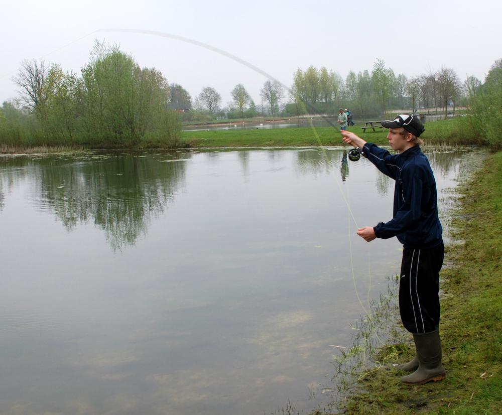 Zowat alles is te vangen. Bijna elke vissoort die je met de vaste hengel vangen kunt, kun je ook vangen met de vlieg. De meest voorkomende vissen die hier in de buurt met de vlieg goed te vangen zijn, zijn o.a. rietvoorn, blankvoorn, baars, winde, kopvoorn en snoek (hiervoor heeft men wel een iets zwaardere hengel nodig). De meeste wateren zijn wel geschikt om te vliegvissen mits niet te diep (tot ca. 1.50 meter) en met een zekere helderheid, de vis moet de vlieg wel kunnen zien. Bij het vissen met nimfen is dit zeker van belang hoewel nimfen gebonden in een fluor kleur vaak nog wel vangen als het water wat troebel is. Wil je meer weten? Mocht men meer willen weten over het vissen met de vlieg of een les of demonstratie willen hebben kunt u altijd contact met ons opnemen.