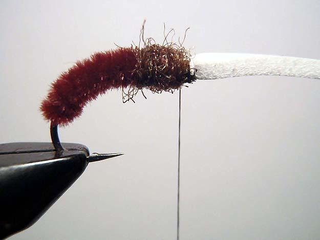 Lichaampje binden van bruin materiaal dat water op zuigt. Thorax binden van bruine dubbing.