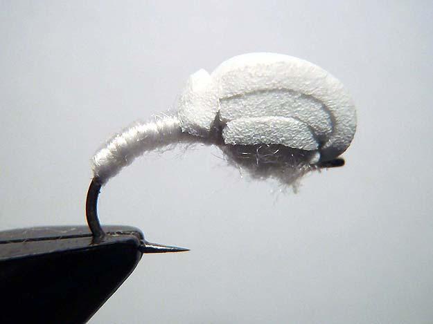 Het moest een imitatiepellet worden die ik niet in hoef te vetten om hem te laten drijven. Ook moest deze vlieg in de oppervlakte hangen, zoals de klinkhamer.